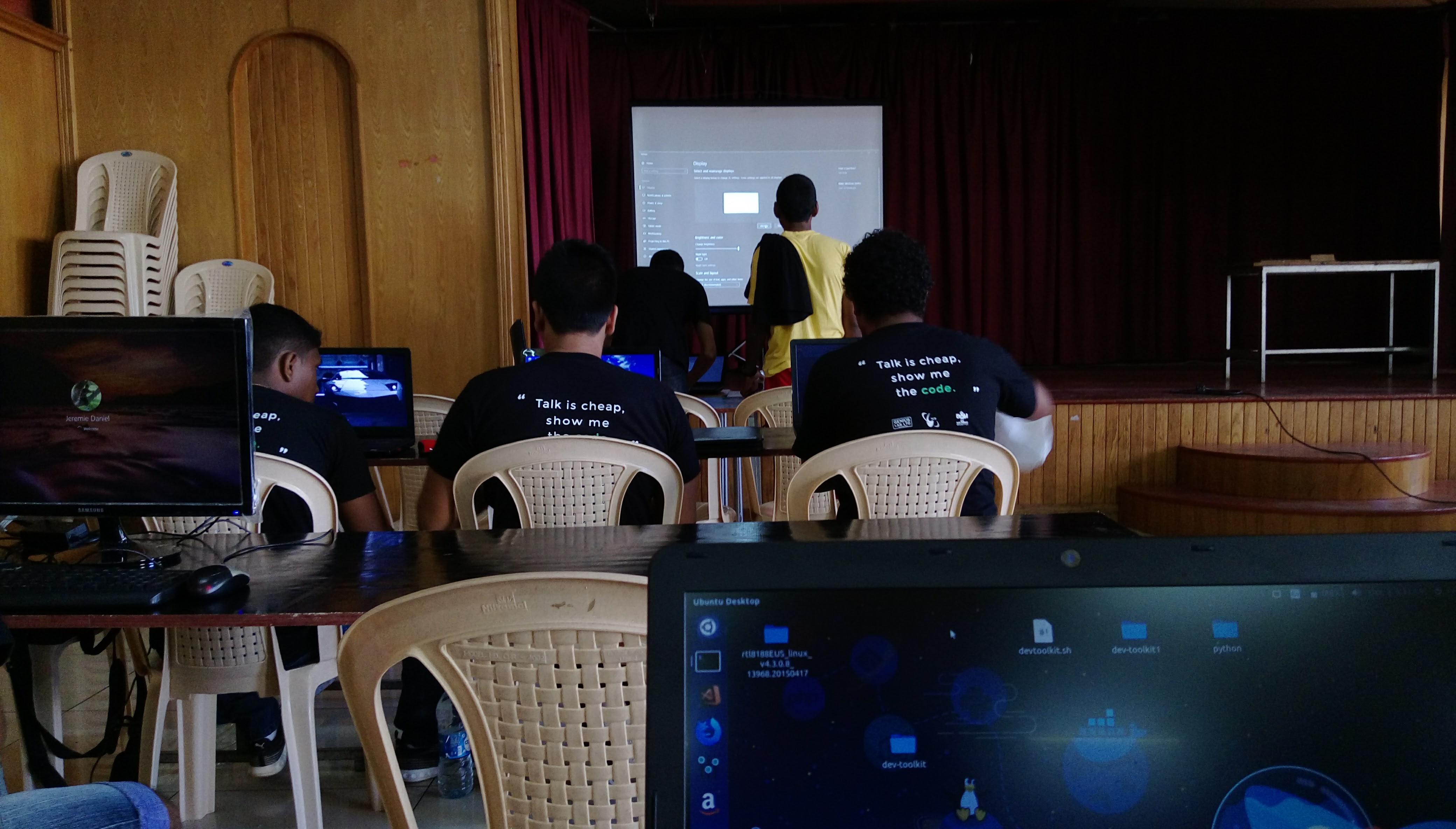 While the event was due to start at 08:00, we got there 20 mins earlier. Hans who was attending the hackathon along with me bought a 1GB data plan since it was already announced beforehand that wifi connectivity might be very limited. Once we got there, we confirmed our presence by registering and we were then given a shirt for the event.